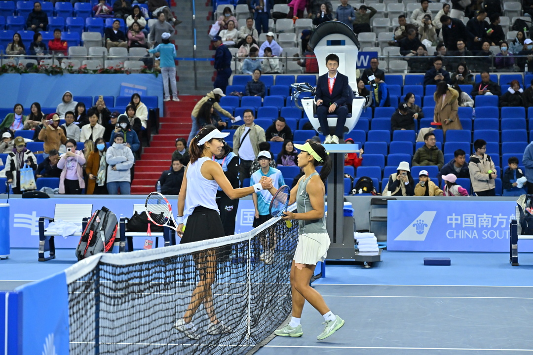 赛后,朱琳(左)同王欣瑜拥抱致意