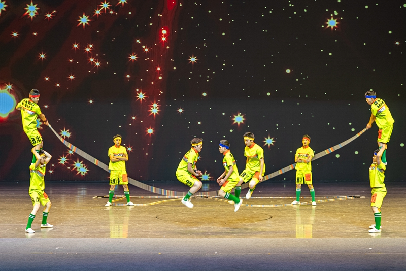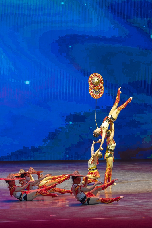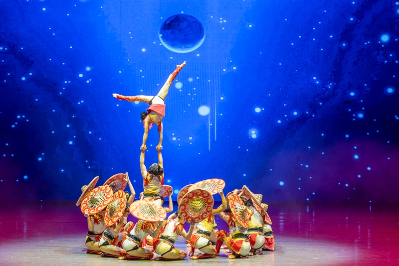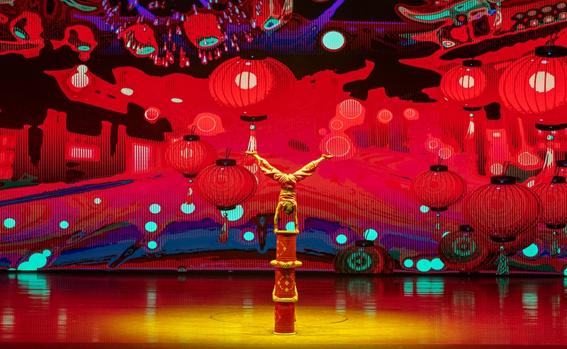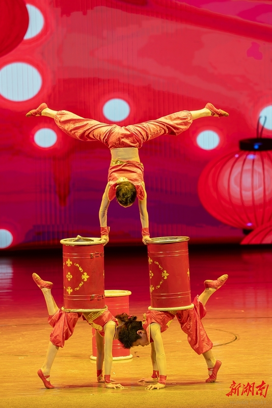 11月19日晚,演员在进行杂技表演。当晚,《国风少年》杂技主题晚会在益阳市赫山区谢林港镇清溪村清溪剧院上演。节目以杂技、舞蹈表演为主,融合了翻腾、软功、手技、高空等高难度技巧,展现了杂技新生代扎实的技艺功底与青春活力,让观众在欣赏高超杂技技艺的同时,领略中华优秀传统艺术的魅力。 湖南日报全媒体记者 童臻熙 摄