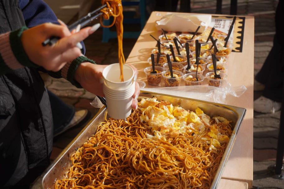 活动现场,由企业与长沙理工大学食品与生物工程学院烘焙研发应用中心联合出品的巨型水果蛋糕,宛若一条华丽的彩虹;香气四溢的自酿啤酒体验区,混合着焦香麦芽、清苦酒花与醇厚酵母气息的独特芬芳,成了最有效的“导流牌”;美食联展区一道道承载着乡愁与记忆的美食,不仅满足了味蕾,更讲述着一个个关于家乡的故事……美食荟萃,让校园变身“美食江湖”。