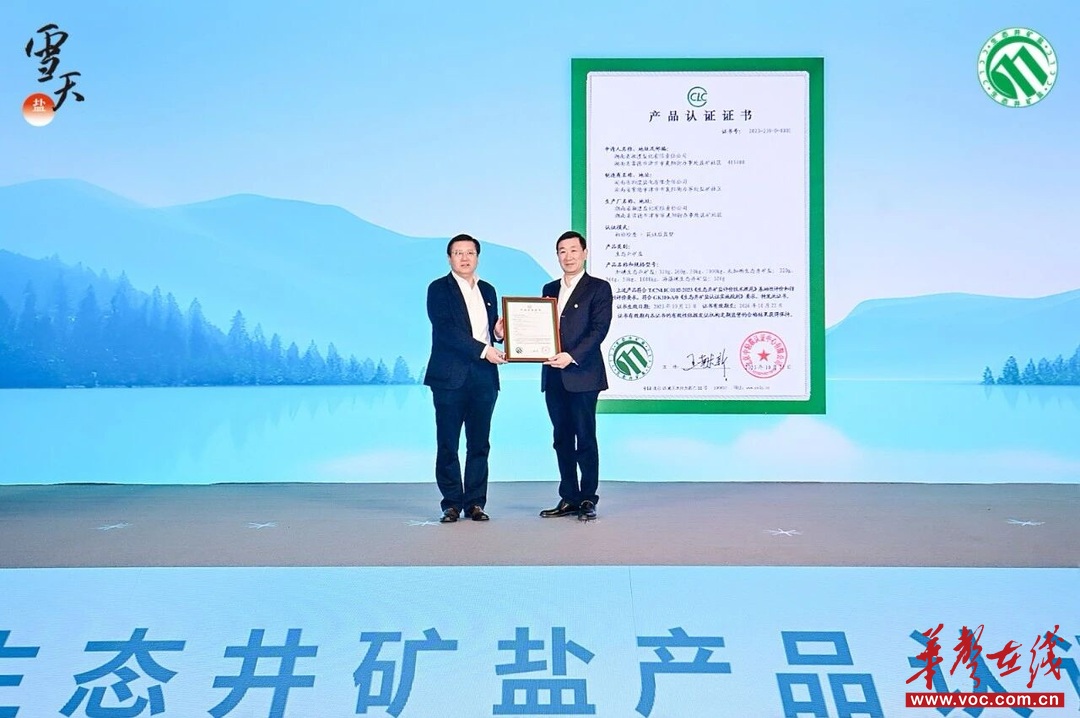 雪天盐业荣获全国首张生态井矿盐认证证书