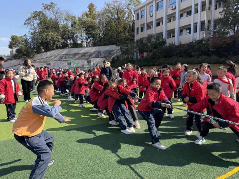 胜利会师拔河赛将氛围推向高潮,各年级采用循环赛制,队员们紧握拔河绳,身体后倾、齐心协力,赛场边的加油声震耳欲聋,绳子中点过线的瞬间,全场欢呼雀跃。