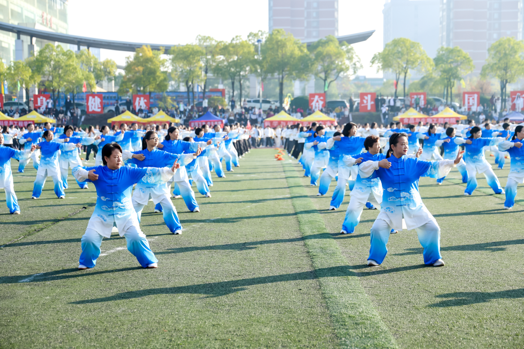 开幕式上,《薪火相传》大型团体操表演以扇为媒、以舞为语,汇成熊熊火炬,象征长理精神生生不息、创新之光熠熠生辉。同学们动作整齐、编排新颖,展现出长理学子昂扬向上的青春风采。教师方阵带来的八段锦表演,让平日里耕耘于三尺讲台的教师们走上绿茵场,以身示范,引领校园健康风尚。