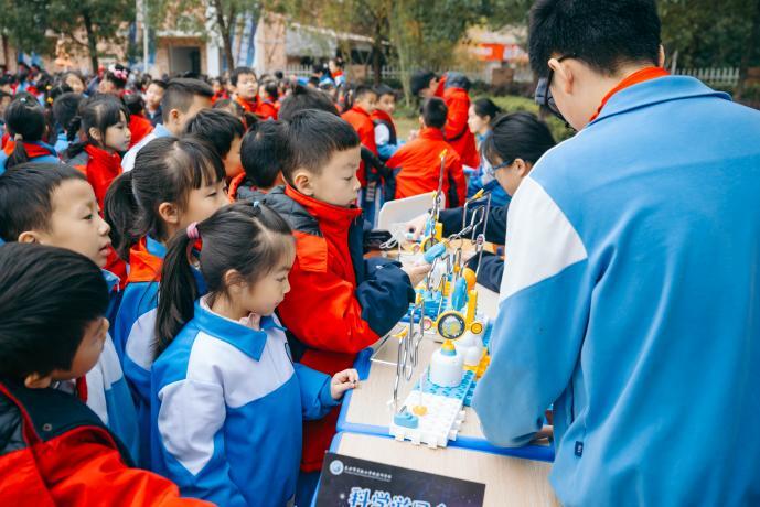 新湖南客户端11月18日讯(通讯员 胡运美) 11月17日上午,长沙市实验小学梅溪湖学校第十一届科技节开幕式顺利举行。湖南省科技馆副馆长刘志平、长沙市科协青少年活动中心主任钟双林、湘江新区教育局科普艺体中心书记莫娇、学校校级家委会代表与全体师生共同拉开了这场集竞技、体验、探索于一体的科技盛宴帷幕。