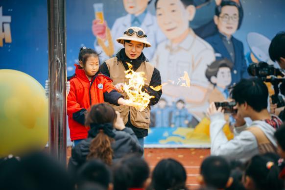 本次开场秀的主题为“隐形魔术师——气体的奥秘。经典实验直观展现气压的强劲威力,趣味讲解揭开空气的成分面纱;丁烷气体让水燃起幽蓝火焰,不烫手的“火云神掌”引得惊呼连连,手搓“等离子空气炮”的酷炫操作让掌声此起彼伏;制氧实验模拟火山喷发的壮观景象震撼人心,液态氮速冻鲜花后瞬间粉碎的奇妙现象、开水遇液氮迸发能量助推小火箭升空的震撼场景,以及现场成型的烟雾蘑菇云,将气体的神奇魅力展现得淋漓尽致。趣味实验与科学解读交织,让同学们在沉浸式体验中触摸科学本质,解锁探索乐趣。