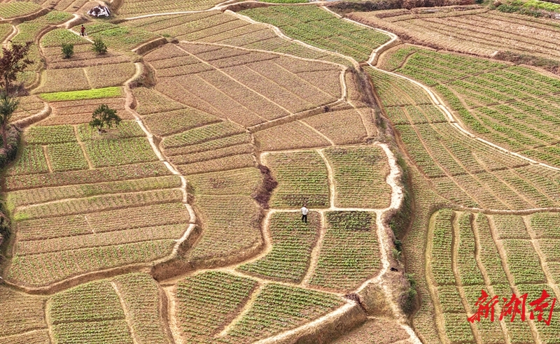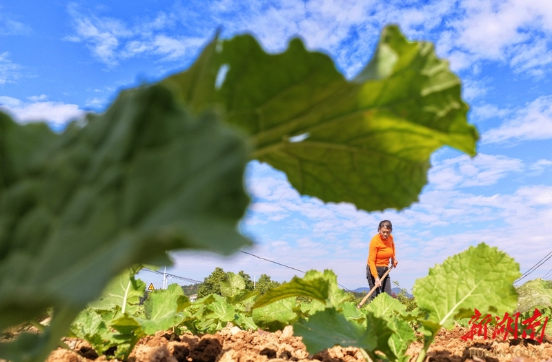 11月20日,衡东县杨林镇,村民在进行冬油菜田间管护作业。小雪节气临近,当地今年冬油菜种植已完成育苗、移栽阶段,正式转入生长期管护关键期。近年来,该县大力推广油稻轮作种植模式,通过科学利用冬闲田种植油菜,既有效避免了农田季节性闲置,又使土地亩产效益得到提升,带动村民增收。曹正平 摄(湖南图片库)