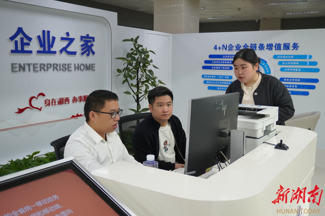 在湖南酒鬼酒馥郁香科技有限公司2万吨大曲项目验收过程中,“企业之家”团队通过流程再造,将审批时限从8个工作日压缩至3个工作日。“我们针对不同类型企业提供‘量体裁衣’式服务。”服务专员向清芸介绍,平台尤其关注小微企业和初创团队审批流程不熟、人手短缺等痛点,湘西州博韬教育培训学校有限公司在专人指导下,仅用3小时就完成了营业执照办理。