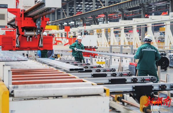11月20日,湘阴高新区鑫政科技新能源产业园生产车间,工人在生产线上忙碌。近年来,该产业园加快技术创新步伐,加大研发投入,助推铝合金产品从传统铝模制造向新能源新材料智能制造转型升级。