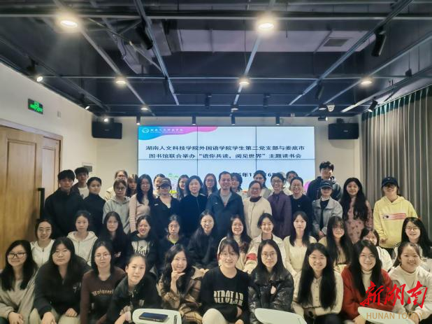 湖南日报·新湖南客户端11月21日讯(通讯员 龙立平 伍佳好)近日,湖南人文科技学院外国语学院学生第二党支部与娄底市图书馆联合举办“与你共读,阅见世界”主题读书会启动仪式。娄底市图书馆馆长宁学平、副馆长陈子君、外国语学院党总支书记李霞、学生第二党支部书记龙立平及学生党员、入党积极分子共同参加本次活动。启动仪式由陈子君主持。