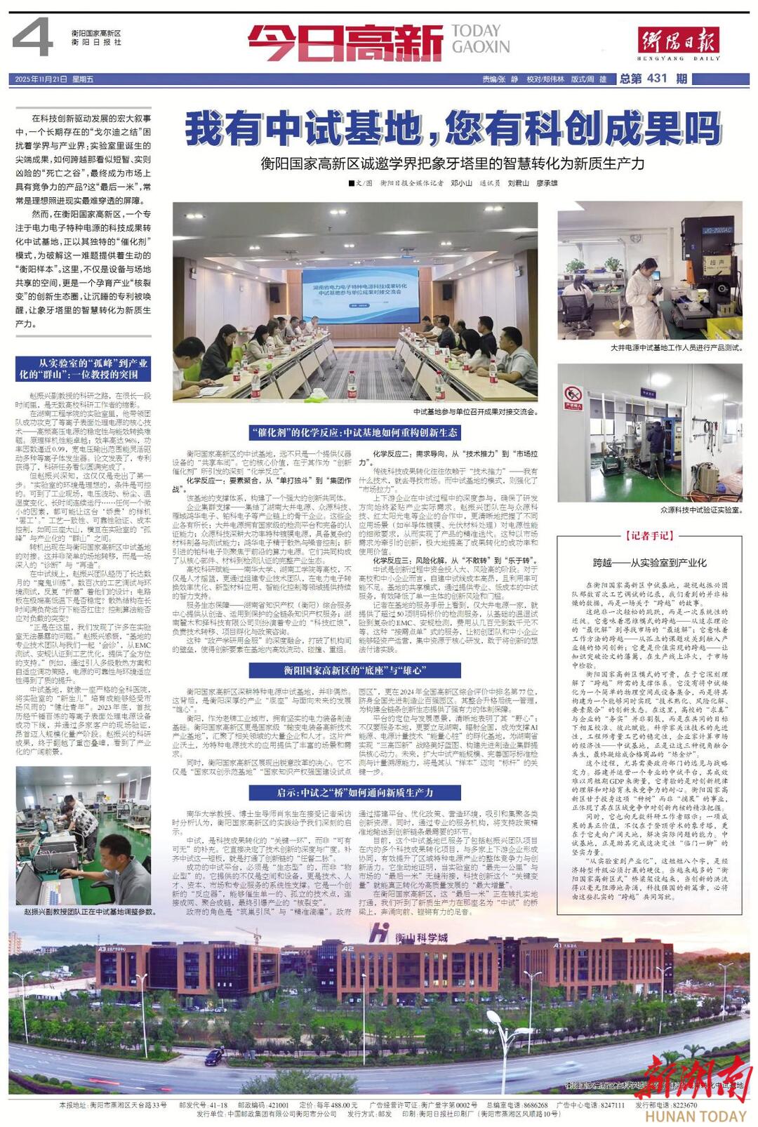 在衡阳国家高新区,这“最后一米”正在被扎实地打通,听到了新质生产力在那座名为“中试”的桥梁上,奔涌向前、铿锵有力的足音。