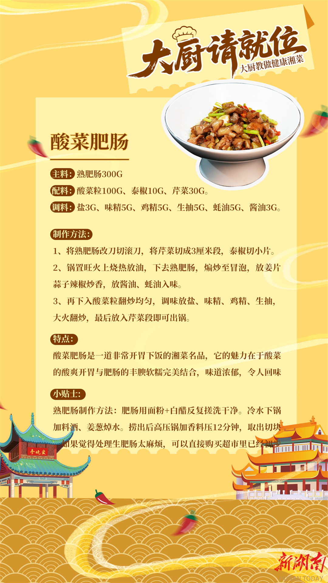 肥肠爱好者集合!《大厨请就位》栏目本期特邀中国湘菜大师郑珑教做酸爽爆炸的酸菜肥肠!快火爆炒,酸菜黄金比例 一口就上头,连汤汁都要拌饭吃光! 快学起来!#转给你家里做饭的人 #大厨教做健康湘菜