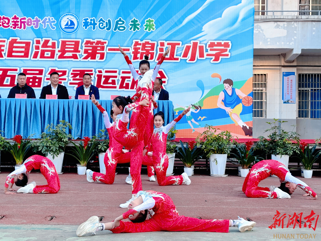 新湖南客户端11月21日讯(通讯员 潘茜茜 黄明亮)初冬的暖阳,为校园披上了一层金色薄纱。11月19日上午,麻阳苗族自治县第一锦江小学迎来以“智跑新时代,科创启未来”为主题的第五届冬季田径运动会。该县教育局党委书记、局长欧宝生,高村镇党委委员、组织委员张华等领导嘉宾出席开幕式。