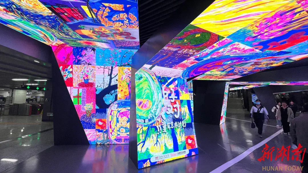 在今年湖南美术馆的“种子派对·童年艺术计划”展览中,长郡学子带来的300余幅丙烯马克笔作品与省内55个美育案例同台展出,吸引众多观众驻足。10月,部分作品又走进长沙地铁溁湾镇站数字艺术展厅,让通勤空间变为市民感受美育的创意窗口。