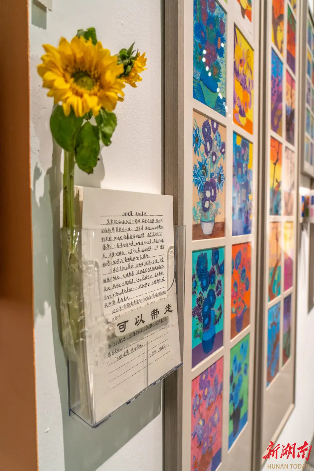 本次参展作品以“窗外的向日葵”为主题,学生通过色彩与线条表达内心世界与审美视角。展览同时呈现了学生的学习体会。有学生写道:“现在我越来越明白美术作为课程出现的原因,校园生活中不只有漫天数字与运算符号,一颗感性的心、一双发现美的眼睛也是少不了的。”