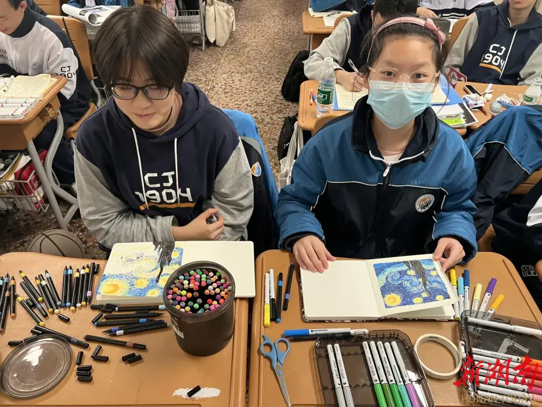 这背后,是学校美术教研组为落实“五育并举”而开展的模块化教学探索。面对高中生学业紧张、时间零碎的实际情况,课程选用便携的丙烯马克笔、水彩本等工具,开设“绘画”“摄影”“书法”“绘本创作”等课程,旨在让每位学生掌握一至两项艺术技能。