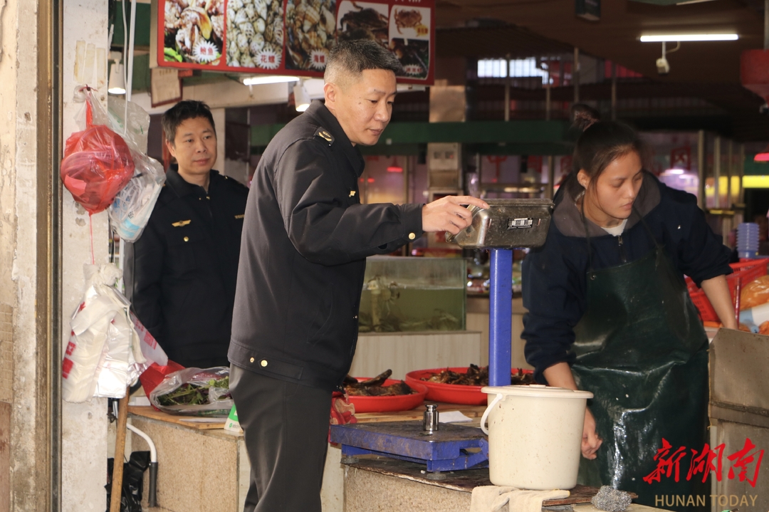 与此同时,集贸市场的“计量体检”也在进行。市场监管执法人员使用标准砝码,对海鲜、卤味、活禽、肉类等摊位的电子计价秤逐一核验。“你们常来查,市场的秤准了,我们买得也踏实。”一位市民笑着反馈。