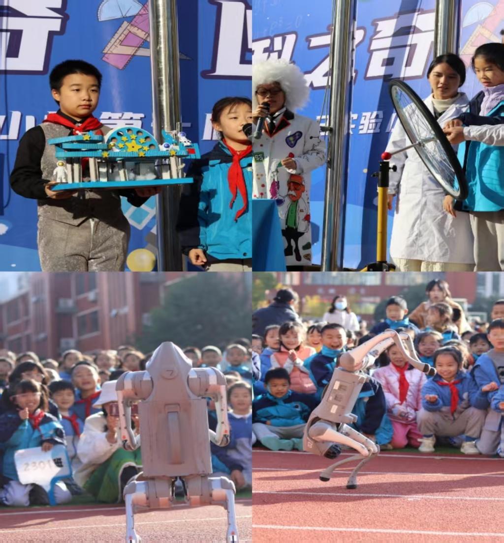 随后,“探暗者的星火方舟” 作品秀、“车轮陀螺”“空气炮”“海洋球机关枪” 三大实验、灵动的机器狗表演引得同学连连称奇,这些环节暗藏科数趣味,为这场科数启蒙之旅拉开精彩序幕。
