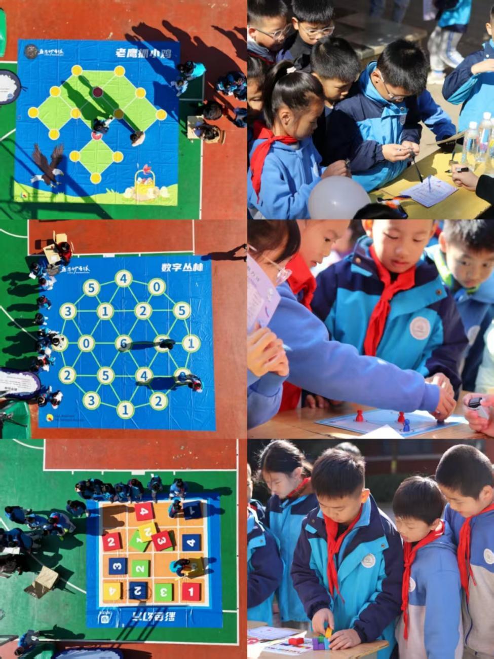 “数字丛林” 中,学生通过移动棋子累加数字,在博弈中锻炼数感;“立体七巧板”“华容道 3×3”“威佐夫游戏” 等项目,融合几何认知、空间思维与策略规划,让学生在闯关挑战中感受数学的趣味性与实用性。此外,“铺马路”“老鹰捉小鸡” 等地面互动游戏,让低年级学生在玩耍中理解数的概念与规则意识...