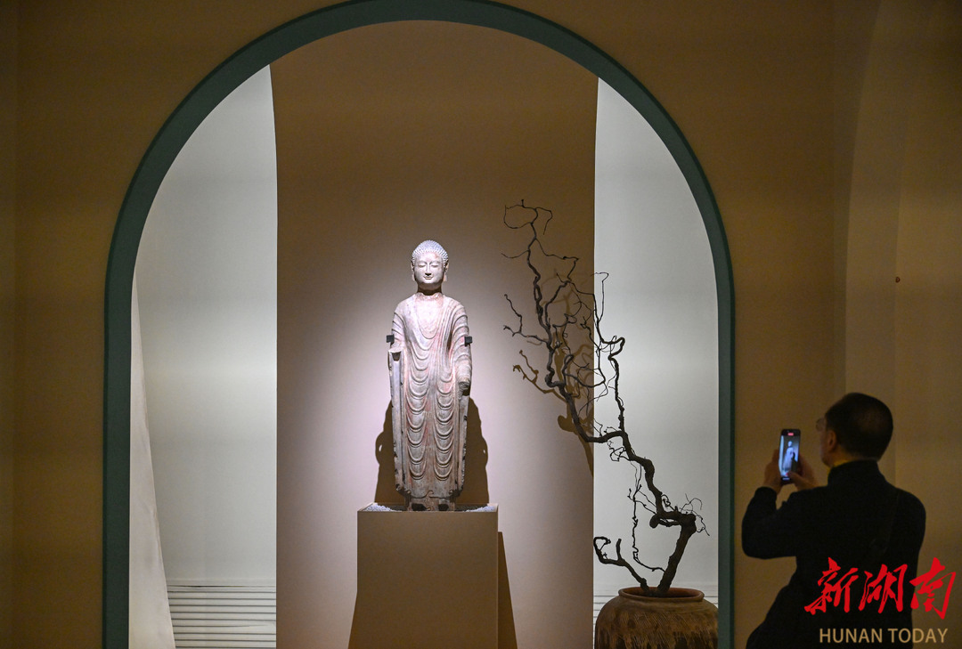 湖南日报·新湖南客户端11月21日讯(记者 廖慧文 摄影记者 郭立亮 通讯员 贺靖婷)11月21日上午,“东方微笑——青州风格佛像艺术展” 在湖南省博物馆正式开幕。展览汇聚来自青州市博物馆、诸城博物馆、山东博物馆等多家文博机构的67件北朝佛像精品,以“东方美学”为主线,展现“改写艺术史的杰作”——青州造像的气韵。