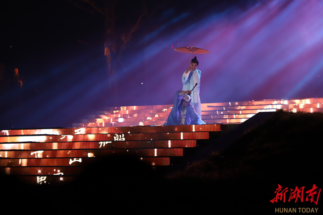 开幕式在龙狮欢腾、鼓乐喧天中拉开序幕。 “开云·衡山谣”“望峰·衡山魂”“福田·衡山欣”“永和·衡山景”四大主题卷轴缓缓展开:“韩愈”独立云雾间,吟出“紫盖连绵,天柱耸峙”的千古诗句;情景剧《禹碑传奇》《白马繁华》《船山修书》带领观众走进大禹治水、湘江商贸与王船山著书的历史场景;大型情景剧《红色衡山》再现了毛泽东在衡山的求索足迹……9个打卡点组成行进式沉浸体验让观众身临其境感受衡山县的人文美景。非遗展区内,还有衡山影子戏、油纸伞等15项非遗项目现场展演。