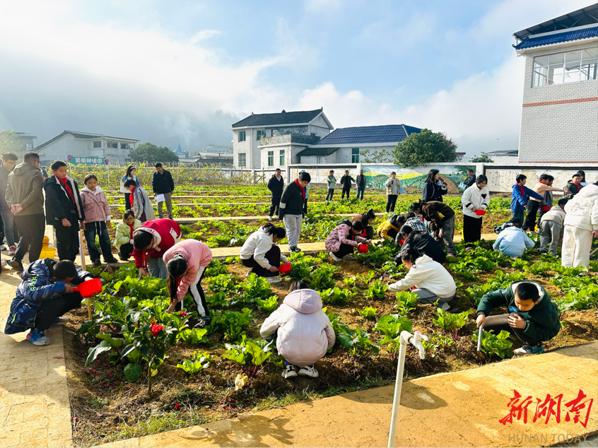 “白菜浇水要‘见干见湿’,既要保证根系吸水,又不能积水烂根……”在河溪小学的菜园里,送教团队的骨干教师结合湘西土壤气候特点,为当地师生示范白菜的日常养护技巧。教师们手持农具,从松土、施肥到病虫害防治讲解操作要点,学生们围在一旁认真观察、踊跃尝试,菜园里不时传来锄头碰撞、师生交流的热闹声响。