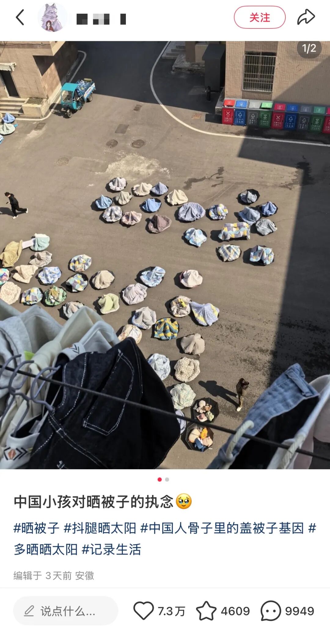只要是晴天阳光照到的地方就有五颜六色的被子