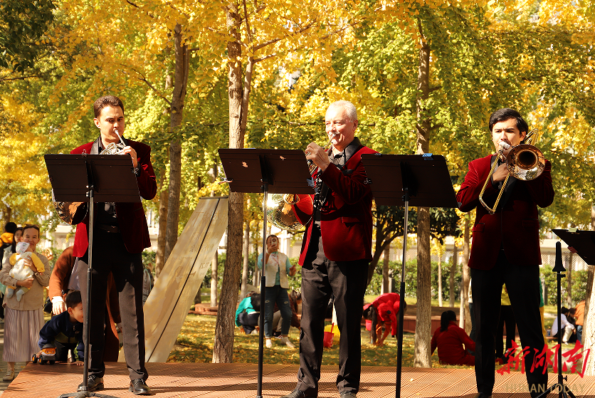 湖南日报·新湖南客户端11月22日讯(通讯员 李洁 陈琼)11月21日中午,张家界学院银杏园中落叶纷飞、乐声回荡。雄鹰铜管乐队以一场别开生面的户外音乐会,拉开了学校“树下”美育浸润系列活动的序幕。这场以“银杏树下”命名的音乐会,不仅是一次艺术展演,更是学校构建“自然即课堂”美育新生态的生动实践。