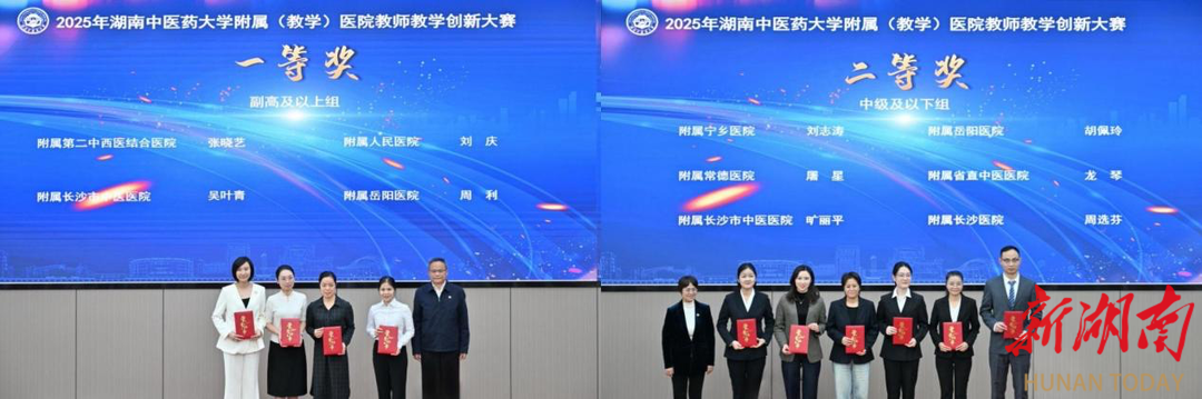 在湖南中医药大学附属(教学)医院教师教学创新大赛中,岳阳市中医医院周利副主任医师凭借《医学教育创新实践》课程设计,运用案例教学与情景模拟等创新方法,荣获副高及以上组一等奖;胡佩玲主治医师以《全周期护理教育模式》的创新成果,获中级及以下组二等奖,展现了医院在教学改革与临床实践融合方面的系统推进。