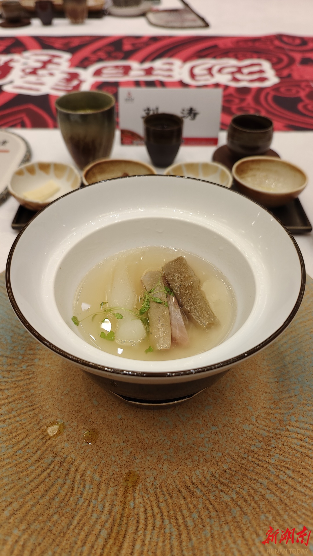 值得一提的是,本次活动的服务团队均经过系统的汉代礼仪培训,从迎宾、侍宴到传菜人员皆身着汉服、行汉礼,展现出湖南宾馆对传统文化的高度尊重与专业传承。整场宴会不仅是一次味觉的复苏,更是一场融合礼仪、服饰、音乐与饮食文化的综合展演,是马王堆所承载的汉代生活美学与饮食文化场景在当代的生动再现。据湖南宾馆相关负责人介绍,经过后续调整,这份菜谱计划推向市场,湖南的吃货们有福啦!
