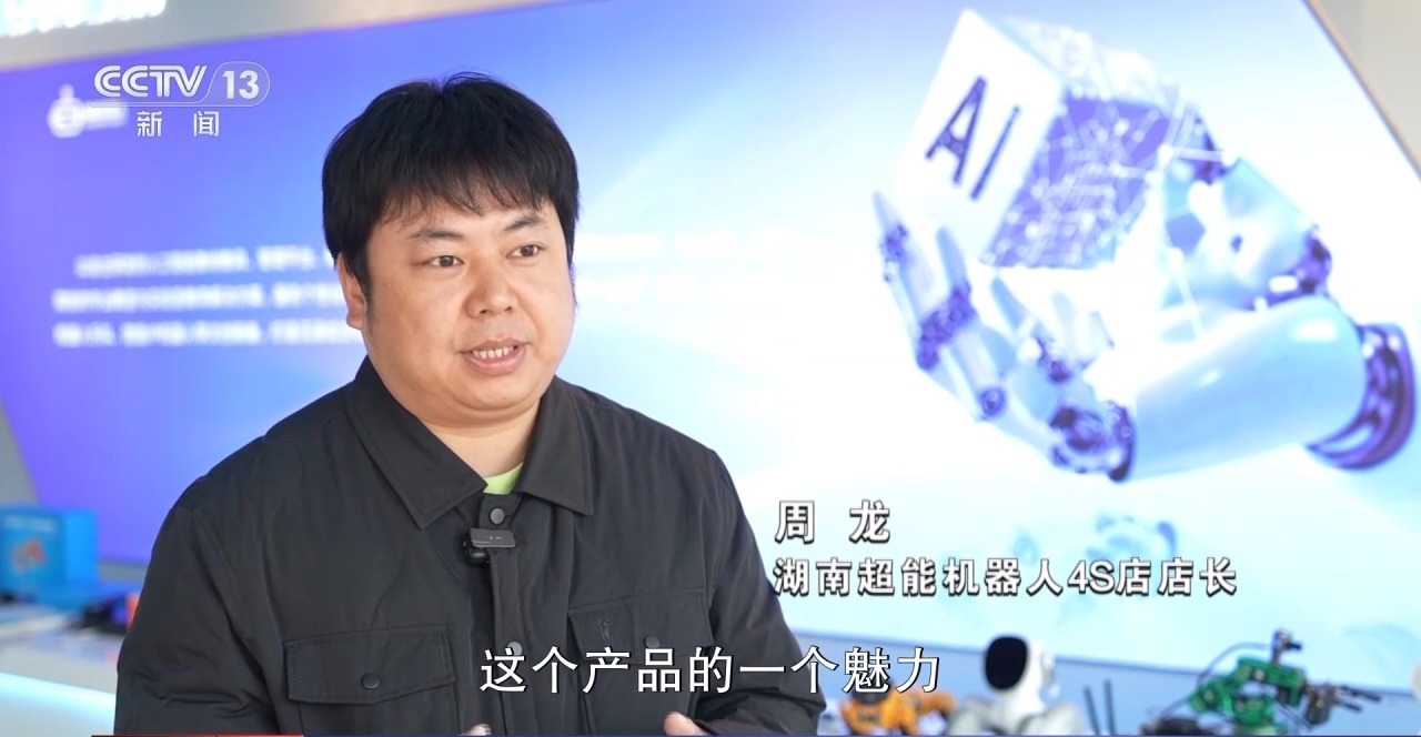 湖南超能机器人4S店店长 周龙:让客户到店里先感受产品的魅力,然后再根据个性化的需求去做一些定制化的服务,未来随着整个产业的发展,包括国家的推动,我们肯定会布局这种消费级的机器人。