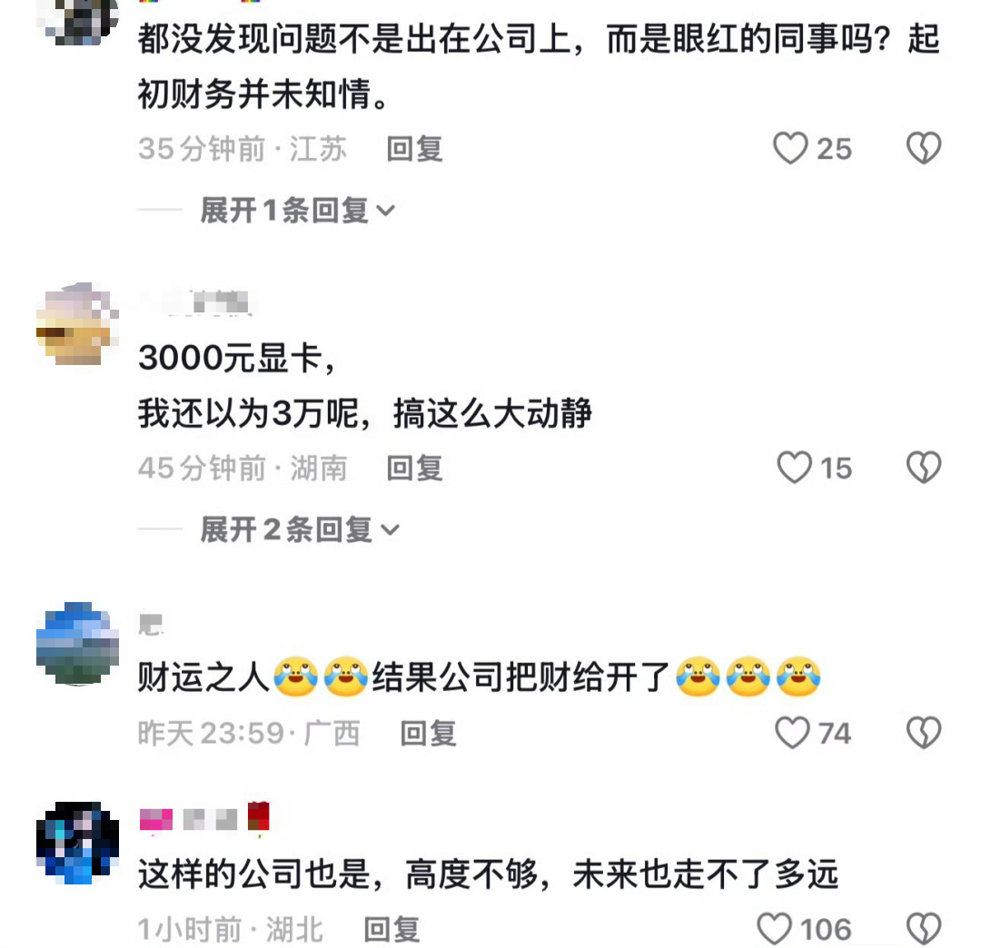 随后几天,公司高层介入后,公司为此事开了两次会商讨,并对他进行了约谈。虽然最终没有收走显卡,但公司人事也找他谈话,委婉地表示事情闹得比较僵,建议他“找找别的公司”。