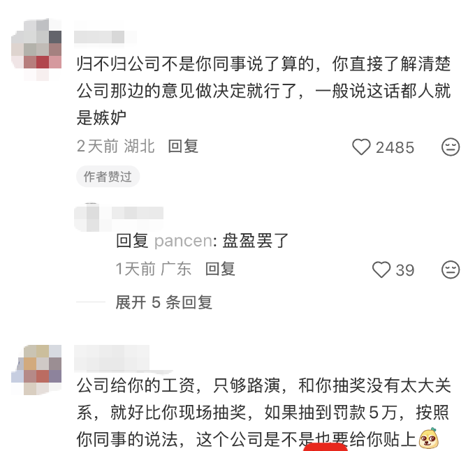 但在本次事件中,根据描述,抽奖活动面向的是“现场观众个人”,中奖具有偶然性。员工在工作间隙自愿参与,通常被视为个人行为,而非直接的职务行为。