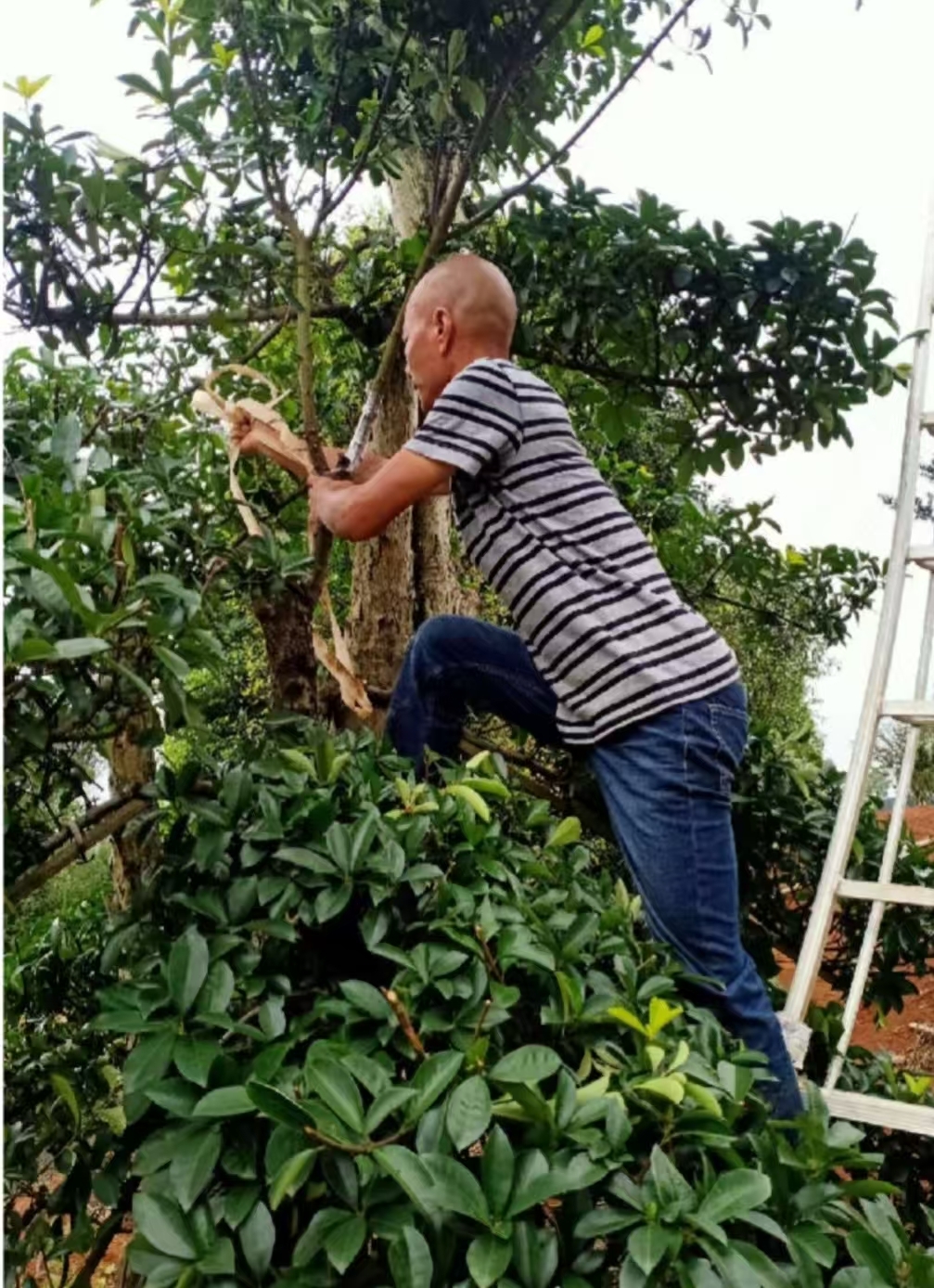 凭着一股韧劲,他在实践中摸索出一系列“独家秘籍”:为了在偏黏的本地土壤种好丹桂,他琢磨出“秋冬深翻改土法”,掺入腐熟的羊粪和河沙改善土质;为了攻克罗汉松“扦插成活率低”的难题,他反复试验出自制生根剂,采用“嫩枝扦插+大棚控温”技术,将育苗周期从三年缩短到一年多;就连常见的红继木,他也通过精准施肥和“冬剪塑形、夏剪促枝”的技法,养出了造型别致、叶色鲜亮的特色精品。他将每一次失败都熔铸为通往成功的阶梯。