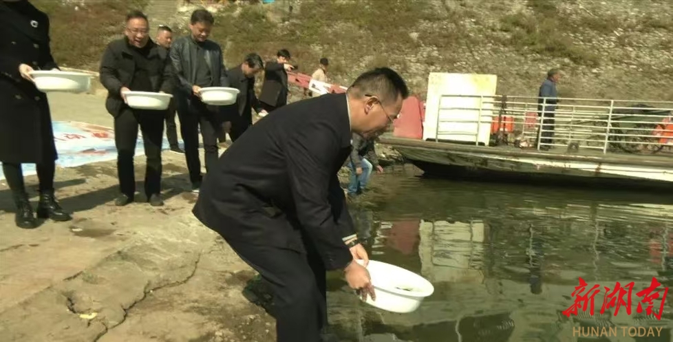 随着副县长刘卫华与群众端起鱼盆,缓缓将鱼苗倾倒入江,“哗啦啦”的水声中,万千鱼苗摆尾跃动,融入澄澈的湘江水中,开启繁衍生息旅程。