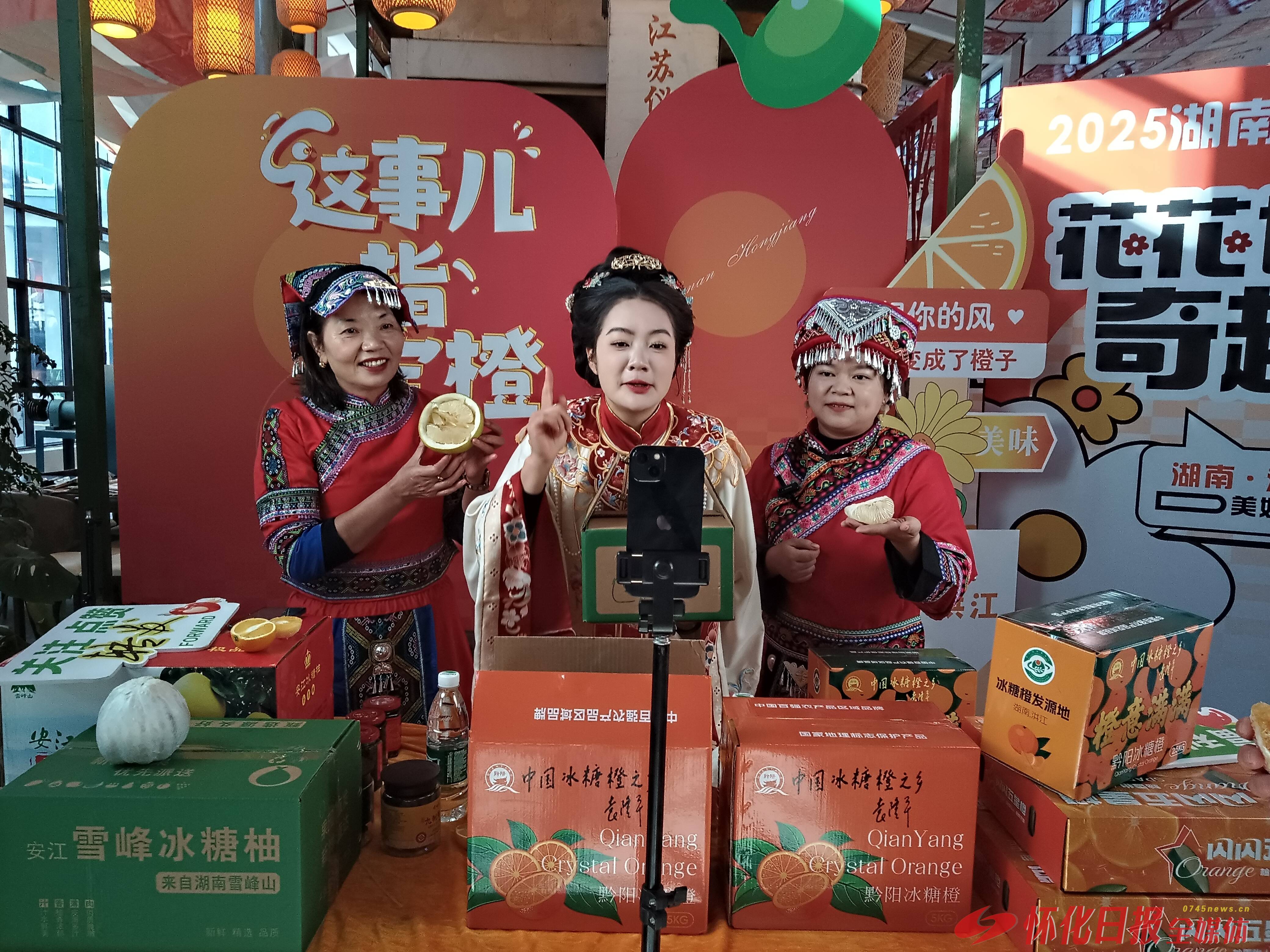 “一品黔阳橘,甜润中国心”,11月22日上午,湖南柑橘节洪江市主会场的线下展示展销活动同步开启纯线上电商直播专场。身着苗族、侗族特色服饰的主播们登录视频号、抖音等平台开播,仅3小时,线上渠道的柑橘类产品销售额就突破200万元,展现出洪江农特产品在电商领域的强劲市场号召力。
