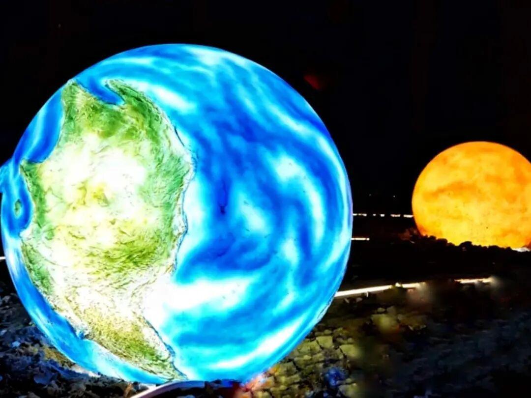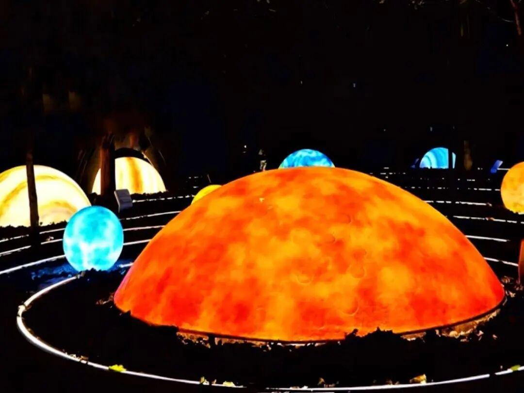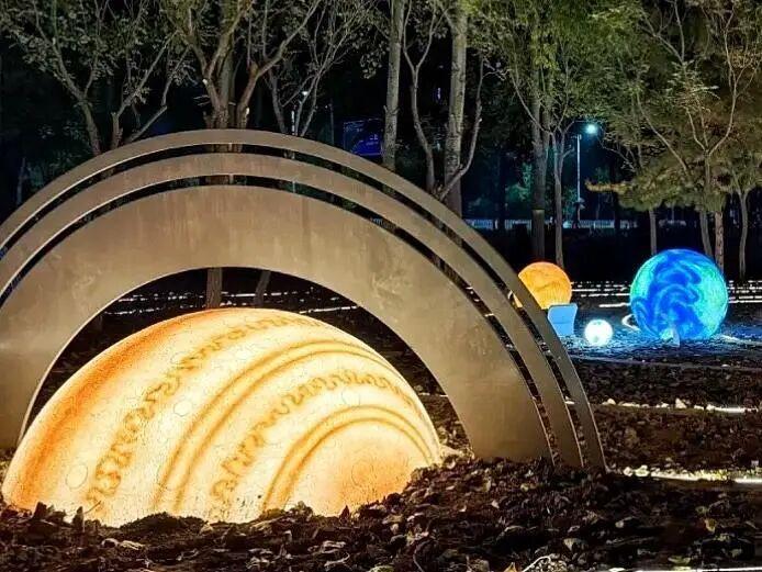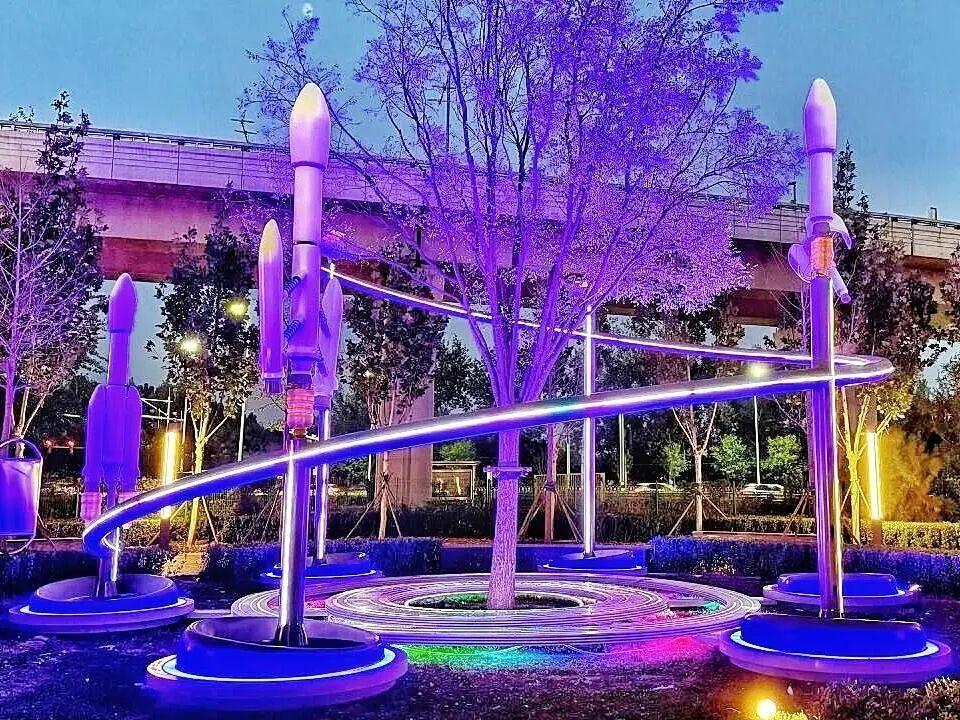 夜晚的广场有很多灯光互动装置。孙佳蕊/摄