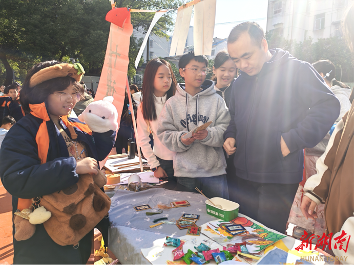 清晨的操场上,各班展台布置得琳琅满目。稻秆编织工艺品、精心制作的树叶书签、香气四溢的秋季小吃、充满创意的校庆主题书画作品……每一件展品都凝聚着孩子们的智慧与汗水。一名学生在接受湖南日报全媒小记者采访时说:“这些美食都是我和爸爸妈妈一起准备的,通过劳动收获果实的感觉真好。”