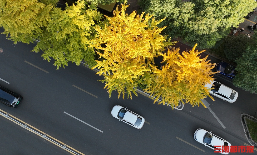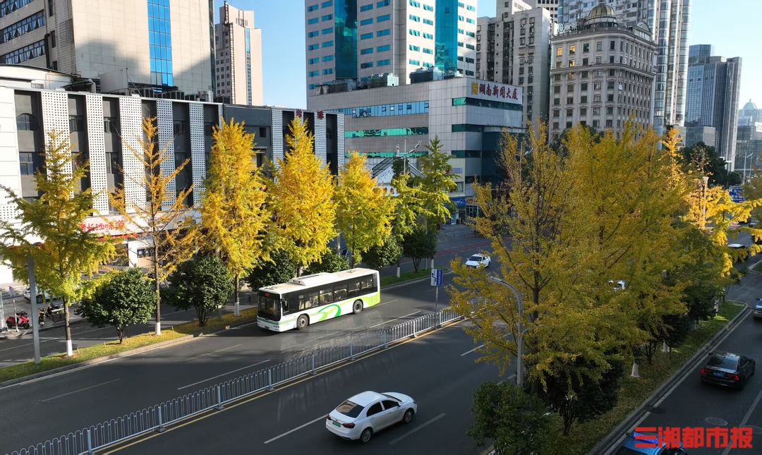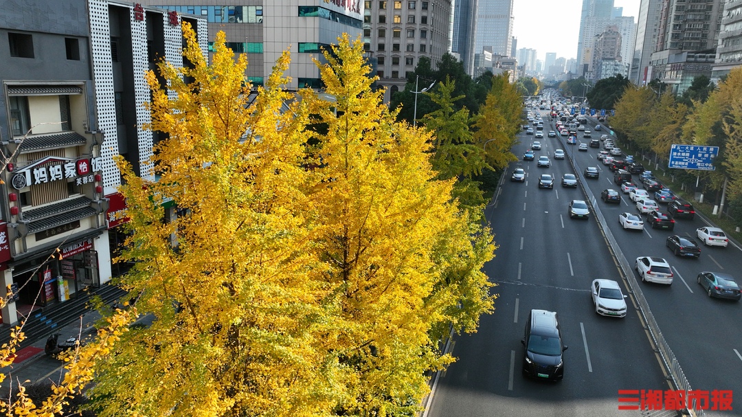 11月24日,长沙。芙蓉路又换上每年定期出现的“金色皮肤”,沿线的银杏叶越来越黄,冬天也越来越近了。(顾荣 何佳洁)