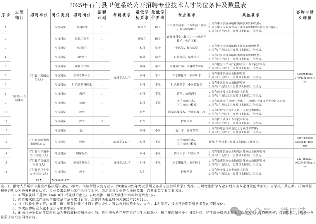 2025年石门县卫健系统公开招聘专业技术人才公告