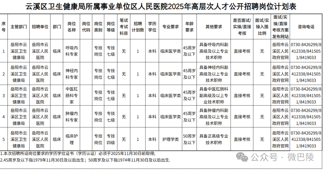 云溪区卫生健康局所属事业单位云溪区人民医院2025年高层次人才公开招聘公告