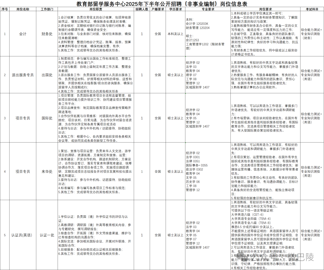 中国(教育部)留学服务中心 2025年度下半年公开招聘公告 (非事业编制)