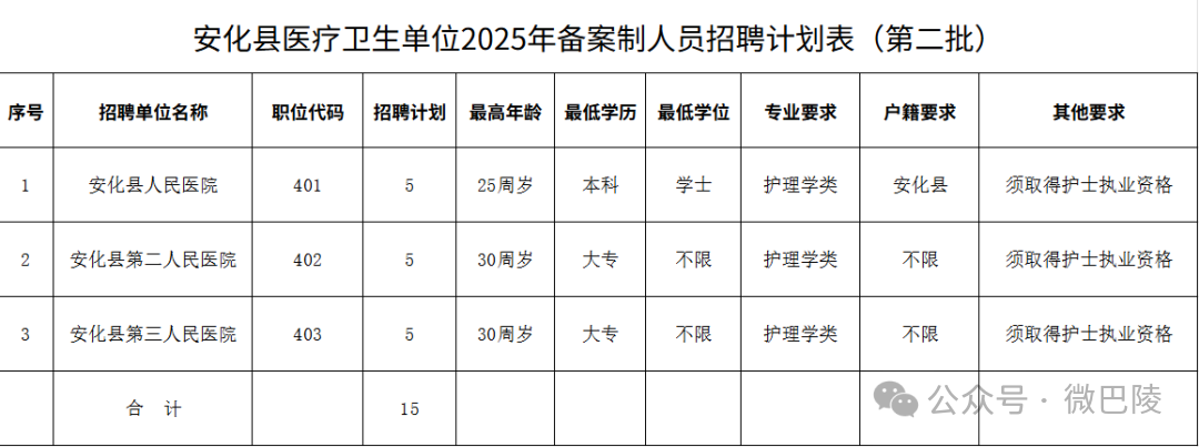 安化县医疗卫生单位2025年 备案制护理人员招聘公告(第二批)