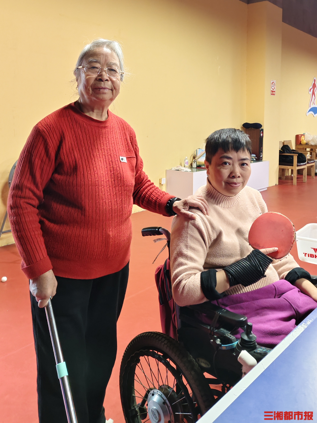 11月24日,清晨的长沙市慧群运动康复俱乐部内,乒乓球撞击球台的清脆声响穿透晨曦。75岁的常美菊在球台边穿梭,熟练地捡拾着散落的乒乓球,目光却一直追逐着一旁的女儿——轮椅上的48岁残疾人乒乓球运动员阎海英。球拍用布条紧紧捆在阎海英的手掌上,每一次挥动都带着对抗命运的倔强,这是母女俩备战全国第十二届残运会的日常。