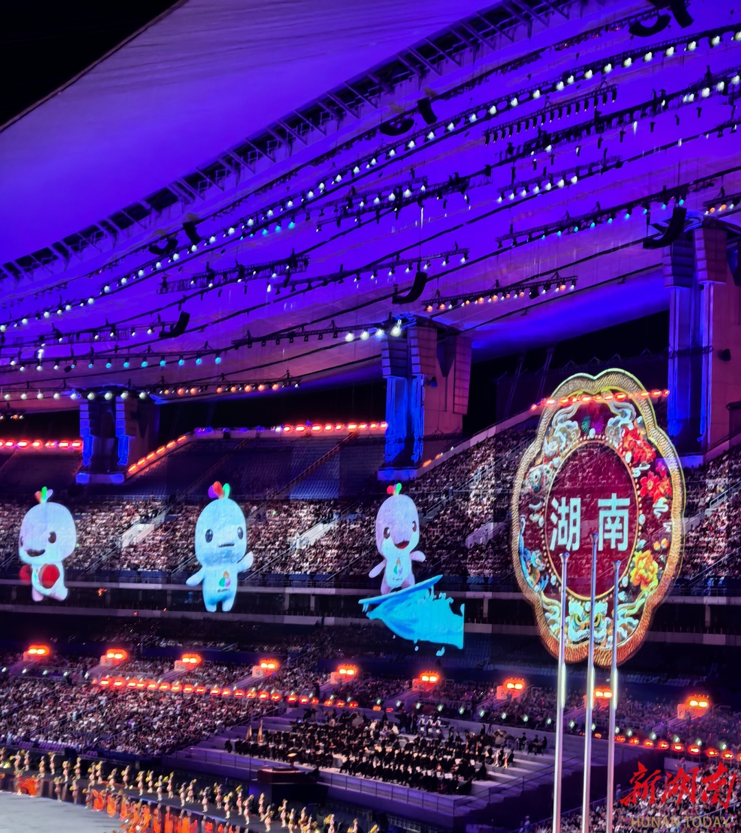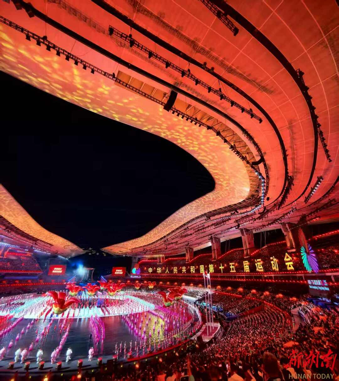 三是开幕式文体展演。十五运遵循“简约、安全、精彩”的办赛要求,这在开幕式的具体实践中得到充分体现。开幕式文体展演以“同心圆”为核心创意,通过环形舞台与巧妙利用雨水形成的“一片海”具象化,运用“虚实结合”技术,让珠江、维多利亚港、伶仃洋的水波在场中交汇,象征三地文化血脉与手足亲情。同时,暖场表演总时长约65分钟,开幕式整体时长控制在90分钟,在近2万平方米的表演空间中,摒弃复杂的地面机械装置,以“去繁就简”的设计传递初心。富有文化创新和“敢为天下先”的湖湘人民在十六运开幕式上将向全国人民奉献一台怎样精彩的文体节目呢?