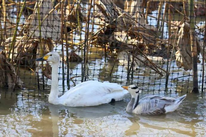 春去冬来,这是屈原管理区第六年迎来大规模越冬天鹅。今年的野生动物保护故事里,还有一段跨越物种的温暖情谊格外引人瞩目。一只来自西伯利亚的小天鹅,一只偶然降落的斑头雁,原本素不相识的它们,因当地居民的爱心救助相聚一堂,从最初“互不搭理”变成了形影不离的好朋友。