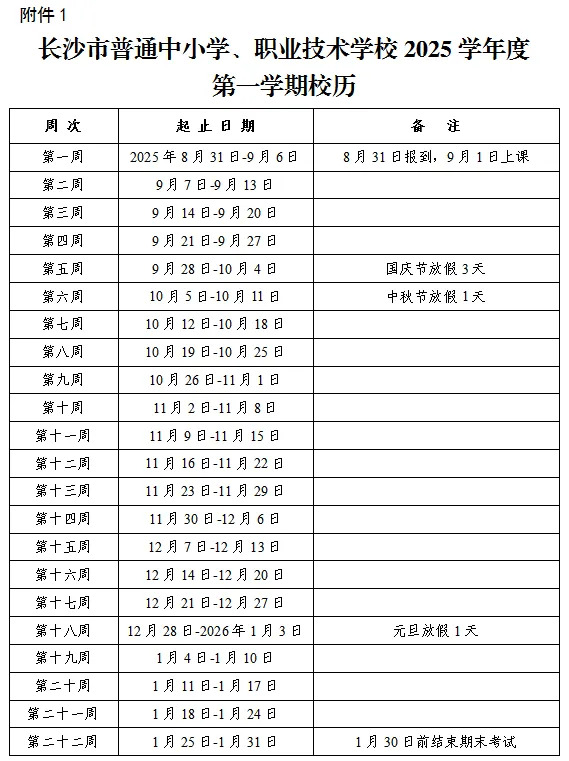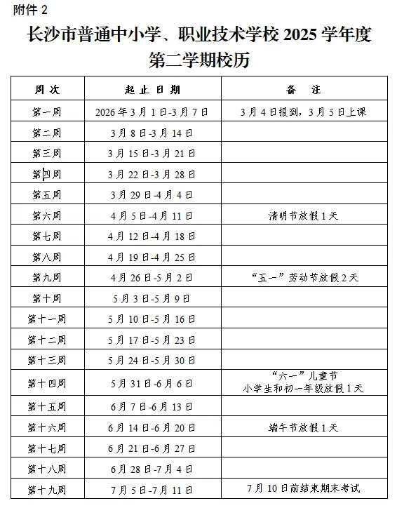 科教新报·新湖南客户端讯(通讯员 邓琼)近日,长沙市教育局公布了2025学年度校历,根据校历安排今年寒假从2026年2月1日开始,2026年3月3日结束,2026年3月5日上课。