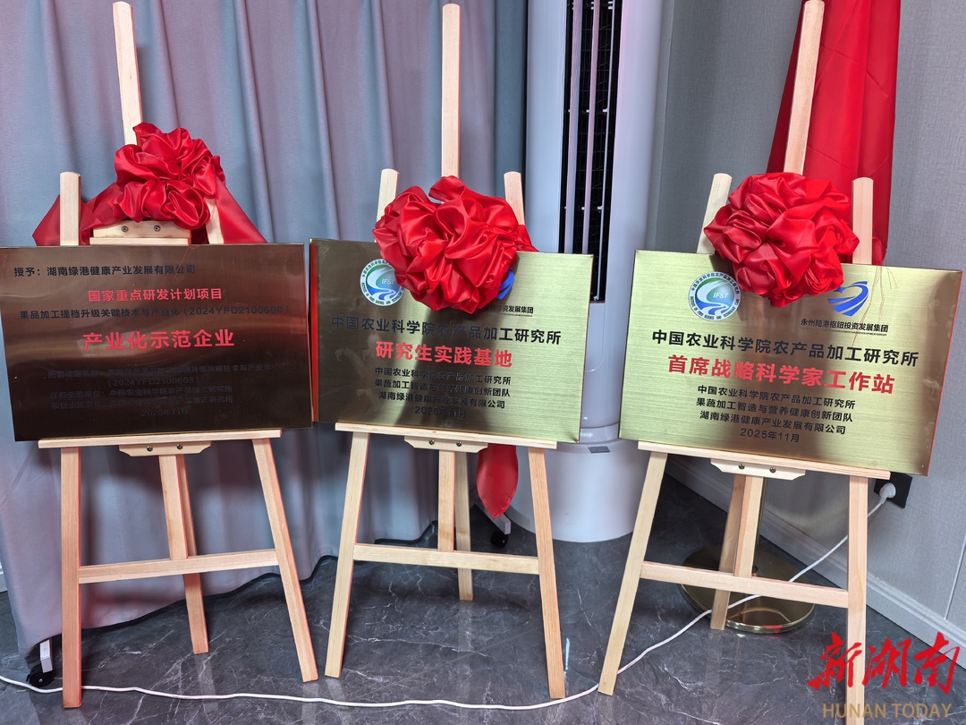 湖南日报·新湖南客户端11月25日讯(记者 黄柳英 通讯员 王哲)11月25日,永州港发集团与中国农业科学院农产品加工研究所战略合作授牌仪式举行。