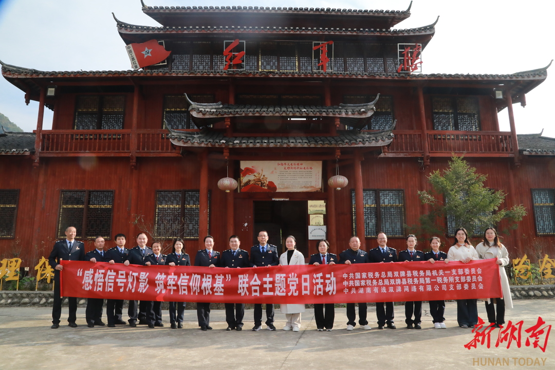 湖南日报·新湖南客户端11月25日讯(通讯员 吕明)11月24日下午,双牌县税务局机关一党支部、第一税务所党支部与湖南有线双牌网络有限公司党支部联合赴茶林镇红军楼,共同开展“感悟信号灯影 筑牢信仰根基”主题党日活动。三个支部的党员代表齐聚红色热土,在重温入党誓词、共唱红色经典、参观历史陈列、开展税企共建、组织志愿服务的系列环节中,进一步增强党性修养,凝聚共建合力,激发服务动能。