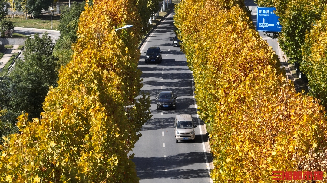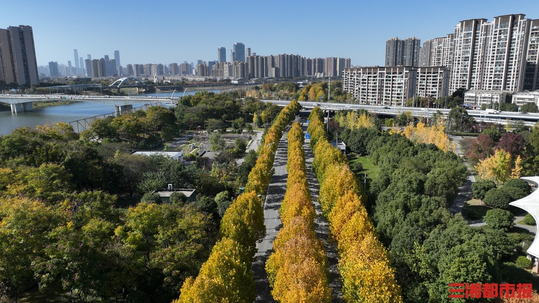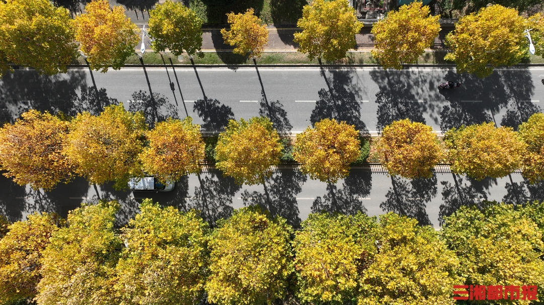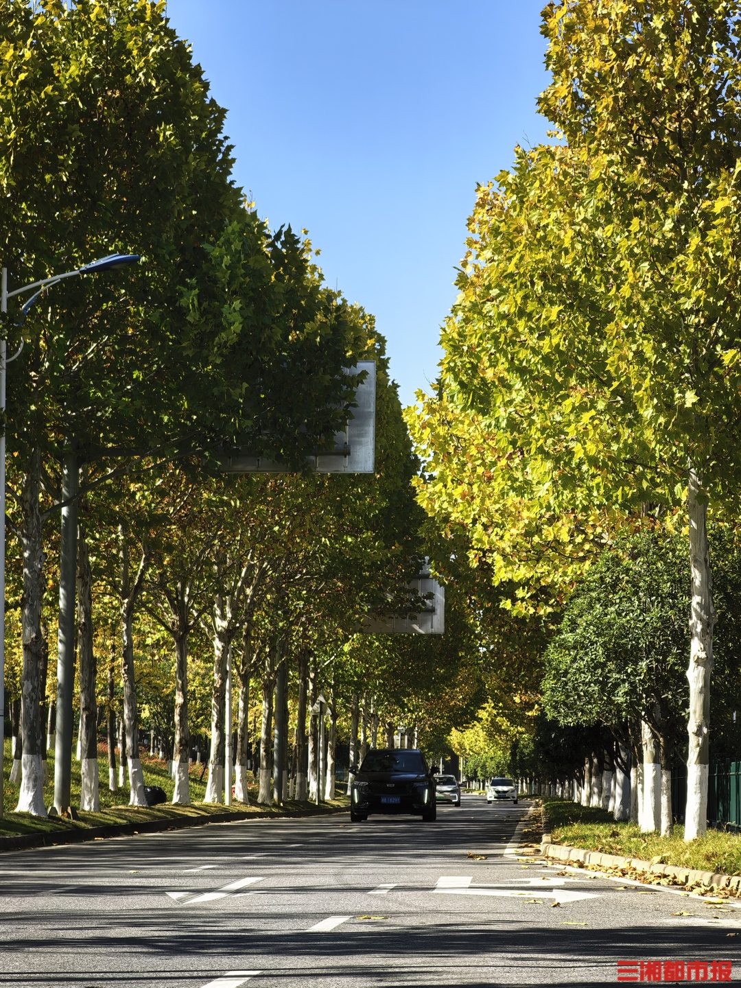 长沙市滨河路(芙蓉区段)被大家称为梧桐大道,都说它金黄色的时候最好看,眼下已到11月底,最佳的打卡时机到了吗? 11月25日,晴,三列梧桐树东西纵横、夹道而立。逐渐变黄的叶片缀满枝头,光影透过叶隙斑驳洒落,此时的色彩已是黄绿渐变,与其他常绿植物对比明显。估计再过几天,待树叶完全变色,最美的梧桐大道就要出现,一起去打卡吧。(顾荣 何佳洁)
