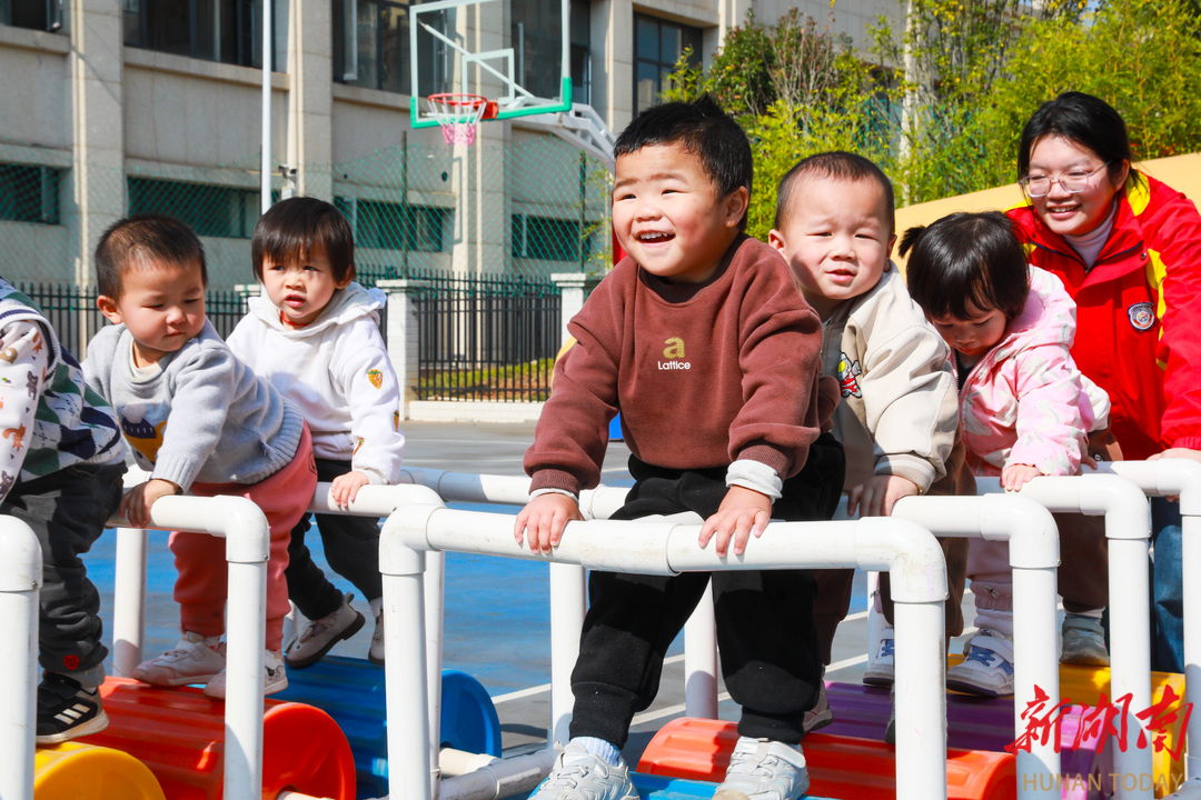 科教新报·新湖南客户端讯(通讯员 刘贵雄 陈祉凝 徐平)11月24日,新田县润兴幼儿园玛利娅蒙特梭利托育早教中心,教师带着托育班的孩子在参加户外活动。近年来,新田县将发展普惠托育服务作为民生重点工作之一,聚焦“3岁以下婴幼儿照护”民生实事,积极推动公办幼儿园、普惠园、社会力量共同兴办发展托育教育,逐步建立起覆盖城乡的托育服务体系,有效缓解家庭育儿压力。