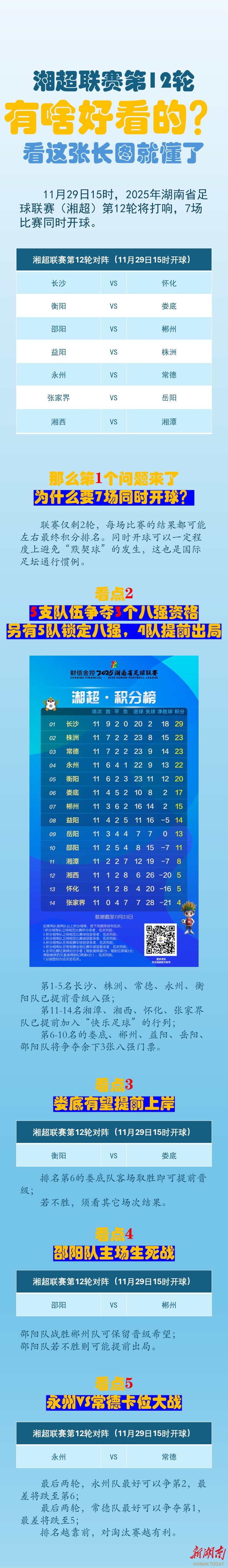 11月29日15时,2025年湖南省足球联赛(湘超)第12轮7场比赛将打响,7场比赛同时开球。那么第一个问题来了,为啥要同时开球?本轮湘超看点,就从这个问题说起。